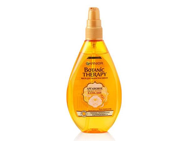 - Масло для гладкости и сияния Garnier Botanic Therapy. В составе присутствуют натуральные масла камелии и арганы. Имеет приемлемую цену (350 руб.), а по эффективности не уступает многим дорогостоящим средствам.