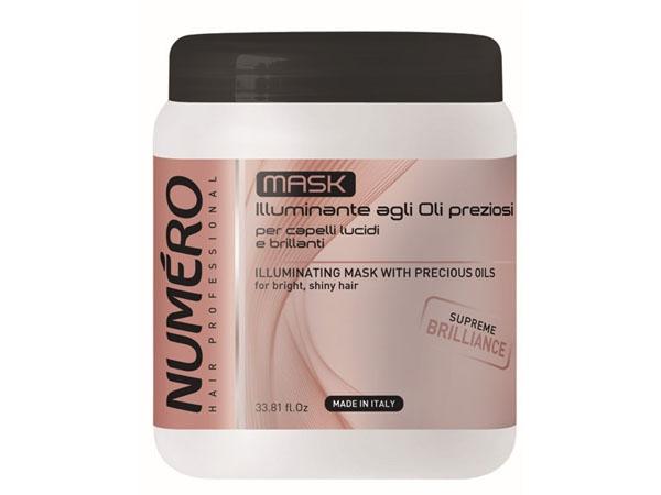 - Маска Brelil Numero для придания блеска с ценными маслами. В формулу продукта включены масла макадамии, макассар и арганы. Они интенсивно питают локоны и способствуют восстановлению их структуры. Стоит около 600 руб.