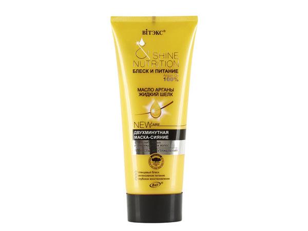 - Двухминутная маска Shine Nutrition от «Витэкс». Достойный конкурент дорогостоящим профессиональным маскам, обеспечивающих сияние и шелковистость локонов. В составе присутствуют масла арганы и абрикосовой косточки, молекулы жидкого шелка и натуральный кондиционер (бетаин). Положительные отзывы пользователей — главное доказательство эффективности применения. Покупка маски Shine Nutrition от «Витэкс» обойдется 150 руб. (200 мл).