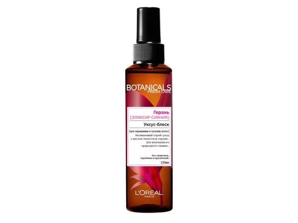- Уксус-блеск L’Oreal Paris Botanicals «Герань». Не содержит парабенов, красителей и силиконов. Обогащен натуральными маслами, приятно пахнет. Рекомендуется использовать для тусклых, окрашенных локонов. Цена — около 645 руб.