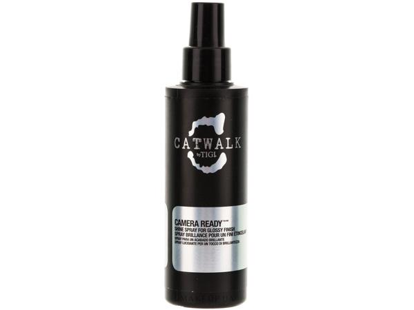 - TIGI Catwalk Camera Ready Shine Spray. Глянец на волосах, необычная гладкость и естественность локонов гарантирована. Прическа сохраняется даже в сырую погоду, исключена пушистость прядей. В составе присутствуют силиконы, но по утверждению производителя они абсолютно безвредны. Цена стайлингового средства — около 1500 руб.