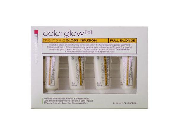 - Bright Shine Gloss Infusion Full Blond от GOLDWELL. Содержит несколько питательных комплексов. Не утяжеляет прическу. Предназначается для осветленных, мелированных волос. Предупреждает выгорание цвета прядей и наполняет их живительной влагой. Рекомендуется использовать не чаще 1 раза в неделю. Цена — 2400 руб.