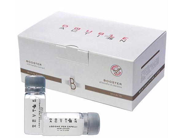 - Бустер с экстрактом кератина Double Action от HAIR COMPANY. Содержит кератин. Обеспечивает моментальное восстановление и преображение. Сияющий блеск, эффект ламинирования, защита от ультрафиолета и агрессивного воздействия косметических средств, краски. Нельзя использовать как самостоятельное средство. Стоимость упаковки (10 бустеров по 10 мл) — 1460 руб.