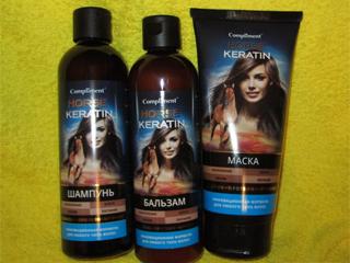 Бальзам Compliment HORSE KERATIN подходит всем типам волос. Состав его включает натуральный кератин, микропротеин, аргинин, масло жожоба, Д-пантенол, комплекс растительных экстрактов. Такой состав позволяет при регулярном применении укрепить локоны, сделать их здоровыми, мягкими, шелковистыми. Не содержит парабенов, силиконов. Выпускается объемом 250 мл.