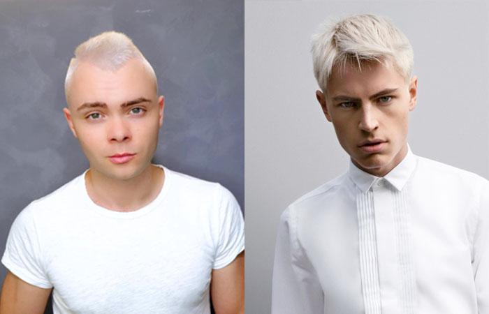 Блонд прерогатива молодых мужчин до 30–40 лет. После на фоне обесцвеченной шевелюры становятся более выражены морщины, отеки и другие возрастные изменения. Известный футболист Девид Бекхэм уже попрощался со светлыми волосами, вернувшись к природному русому. Часто белый выбирают бунтари, тем самым бросая своеобразный общественный протест. Не так давно превращались в платиновых блондинов Джастин Бибер, Зейн Малик, а также не изменяет белым прядям звезда инстаграма — Лаки Блю Смит.