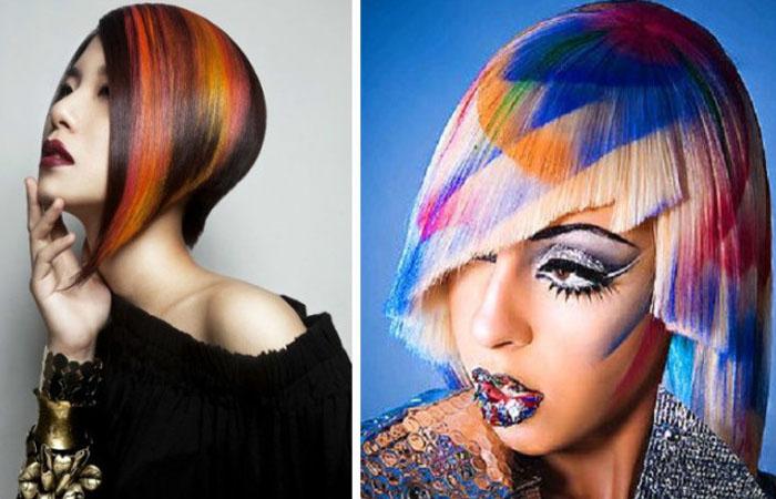 Творческое окрашивание волос на сегодняшний день становится все более и более знаменитым. Блочное окрашивание отличается яркими, смелыми тонами, а цветовая гамма мелькает всевозможными цветами, притом сочетания могут быть довольно многообразными. Окрашивание подходит для девушек, готовых изменить свою внешность и выделиться из толпы.