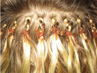 Бразильское наращивание волос Для этого наращивания тоже не требуется никаких дополнительных материалов и средств. Волосы на затылке разделяются на небольшие пряди, и донорские волосы вплетаются в волосы клиента при помощи косички, после чего прядь фиксируется нитками или искусственными волосами.