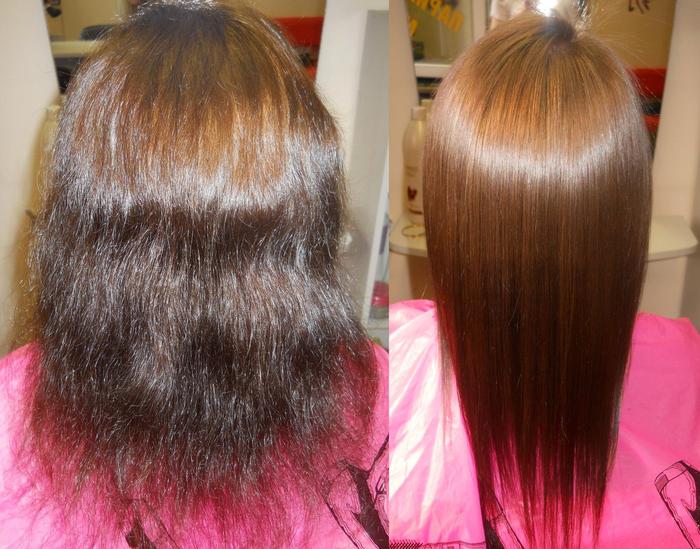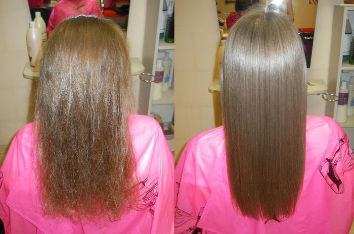 - кроме безупречного внешнего вида, шевелюра оздоравливается. Каждая последующая процедура утолщает стержень волоса, добавляя прическе объем;