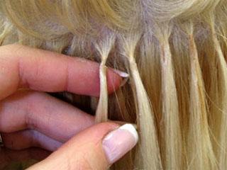 Здесь берутся более мелкие пряди, работа длительная, нужно следить, чтобы натуральные волосы прочно соединялись с наращиваемыми. Важно правильно определять оптимальную температуру нагревания инструмента для каждого клиента, чтобы не причинить вреда структуре натурального волоска.