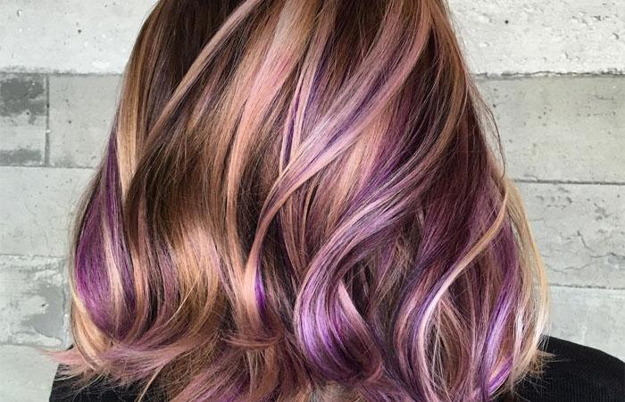 Брюнеткам в силу того, что осветлитель может не вывести собственный пигмент, мастера парикмахерского искусства рекомендуют делать колорирование. Окрашивание прядей в сливовый, баклажановый, коньячный цвета позволит существенно освежить образ.
