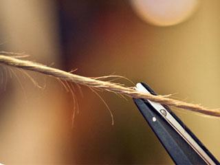 При наличии большого количества посеченных прядей скрутите жгуты повторно, но уже в другую сторону, и снова срежьте торчащие волоски.