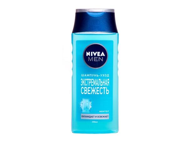 - Одним из самых популярных шампуней можно назвать Nivea Men «Экстремальная свежесть» с ментолом, объемом 400 мл. Средство предназначено для нормальных и жирных волос, идеально подходит для ежедневного мытья головы. Приятный дополнительный эффект — стойкая ледяная свежесть. Шампунь необходимо нанести в небольшом количестве на голову, аккуратно вспенить и промыть теплой водой. Минусов у этого средства покупатели не обнаружили. Средняя цена за флакон составляет 150 рублей.