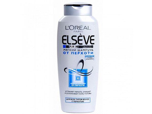 - L’Oreal Elseve для мужчин от перхоти объемом 250 мл. Шампунь подходит для любого типа волос. Помогает надолго справиться с зудом и шелушениями. Возможно ежедневное использование. Минусом эксперты отмечают возможное появление аллергических реакций, а покупатели сравнительно высокую стоимость за указанный объем. Для эффективного применения нужно нанести небольшое количество на мокрую голову. Затем вспенить и оставить на срок до 2 минут, после тщательно промыть волосы теплой водой. Средняя цена по России 150 рублей.