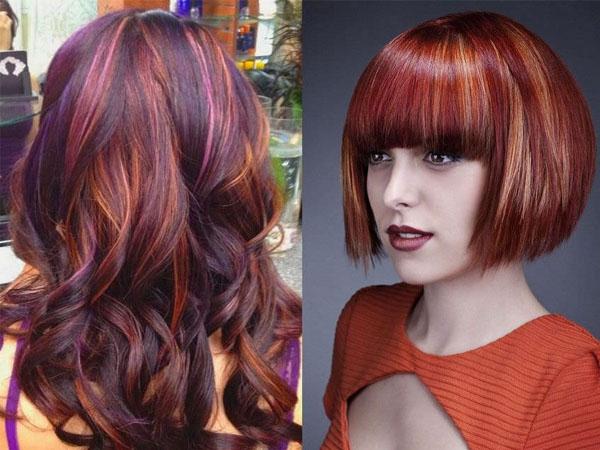 Такое мелирование подойдет только темноволосым девушкам. В палитру входят такие цвета, как красный, бронзовый, рыжий, кирпично-красный, красно-коричневый, все остальные тона этого спектра. Отличный способ оживить темные локоны задорными яркими оттенками, но при этом не портить волосы осветлителями.