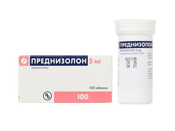 - Кортикостероиды. Форма выпуска таблетки или инъекции. Наиболее распространенный, эффективный препарат — Преднизолон. Это синтетический аналог гормонов надпочечника. Препарат оказывает ярко выраженное противовоспалительное, антитоксическое, антиаллергическое действие. Развитие побочных эффектов возможно только при неконтролируемом приеме Преднизолона. Противопоказаниями к применению являются высокое артериальное давление, патологии почек, туберкулез, заболевания органов пищеварительной системы. Средняя стоимость препарата — 110 рублей.