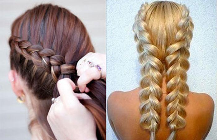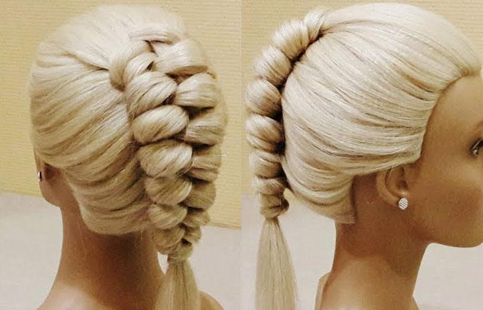 Удачнее смотрятся укладки на длинных волосах. Аккуратное плетение требует внимательности, практики. Важно правильно подобрать «свою» вариацию перевернутой косички.