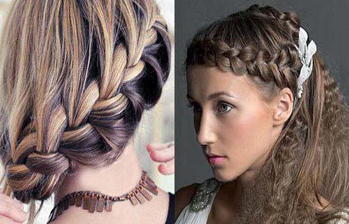 - вытянутое личико удачно сочетается с круговым венком, диагональными косами.