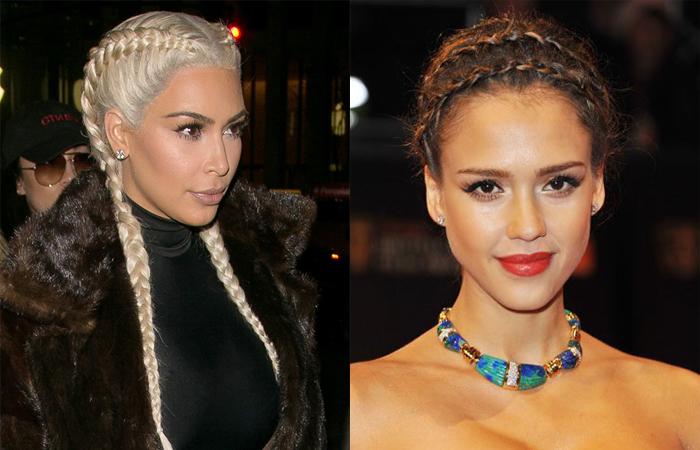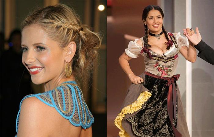 Косы всегда занимают почетное место в списке предпочтений знаменитостей в укладках. Благодаря вариативности причесок, голландское обратное плетение пользуется повышенной популярностью звезд. Многие дамы замечены с такими косичками в светской и повседневной жизни. Укладка часто мелькает на фото Сары Мишель Геллар, Сальмы Хайек, Ким Кардашян, Джессики Альбы.