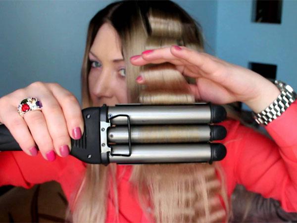Тройная плойка-волна дает возможность самостоятельно, за небольшой отрезок времени, сделать красивую прическу.