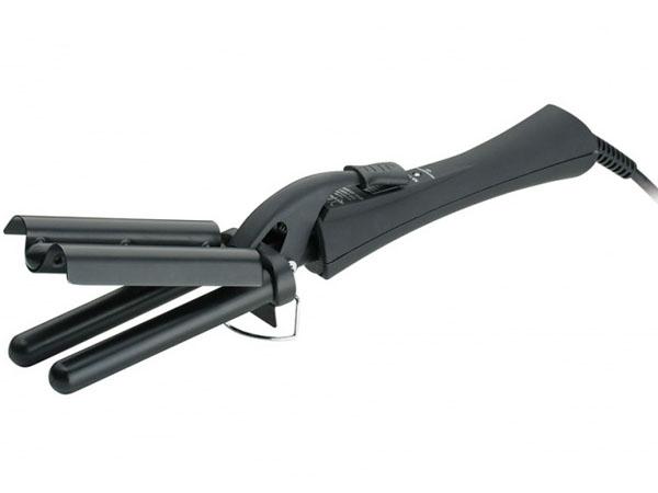 Тройная плойка — это оборудование для завивки волос, которое создает эффект волны. Создается волна за счет трех нагревающихся валиков разного диаметра. В зависимости от их размера получаются разные волны: мелкие (диаметр 13–14 мм), большие (диаметр 19–20 мм). На ручке плойки установлен терморегулятор.