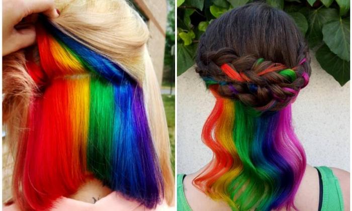 Цветной лак для укладки — кроме того, что с его помощью можно закрепить причёску, им можно придать цвет. Но такой вариант подойдет скорее разово, для посещения какого-нибудь мероприятия.