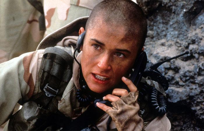 Деми Мур и ее знаменитая роль Джордан О’Нил в картине «Солдат Джейн» — необычно, ярко и таланливо! Стоит отметить, актриса входит в число первых девушек, лишившихся ради кино роскошных волос. Сам фильм и роль актрисы не были восприняты кинокритиками «на ура!», но принес лысой Деми Мур мировую известность, восхищение зрителей.