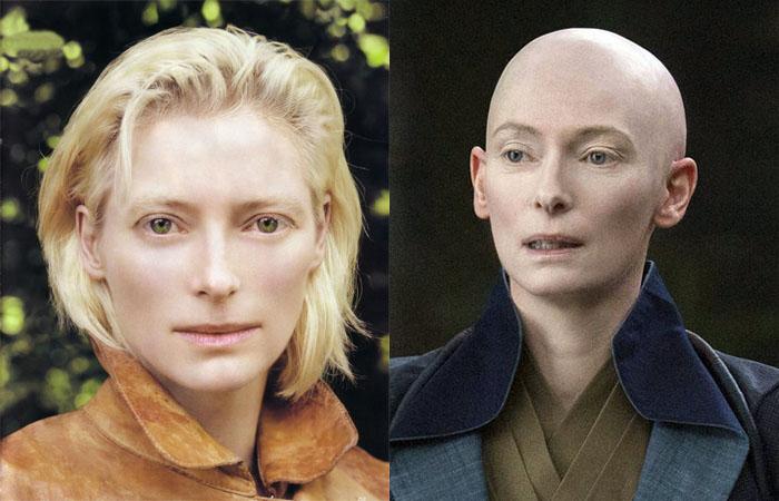 Тильда Суинтон оголила голову для съемок древнего, духовного наставника в фильме «Доктор Стрэндж». Стоит отметить, Тильда не задумываясь лишилась локонов ради предложенной роли. Не все одобрили замену мужской роли Старейшины Тильдой Суинтон, но сама актриса осталась в восторге от проделанной работы.
