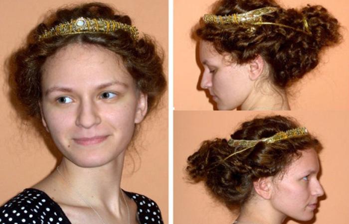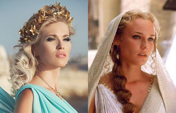 Длина волос может быть разной, даже девушкам с короткой стрижкой можно воссоздать образ греческой богини, украсив шевелюру золотистым ободком или повязкой. Предпочтительно, чтобы волосы были ниже уровня плеч. Чем длиннее локоны, тем больше вариаций удастся выполнить мастеру.