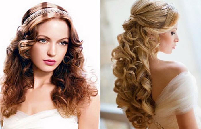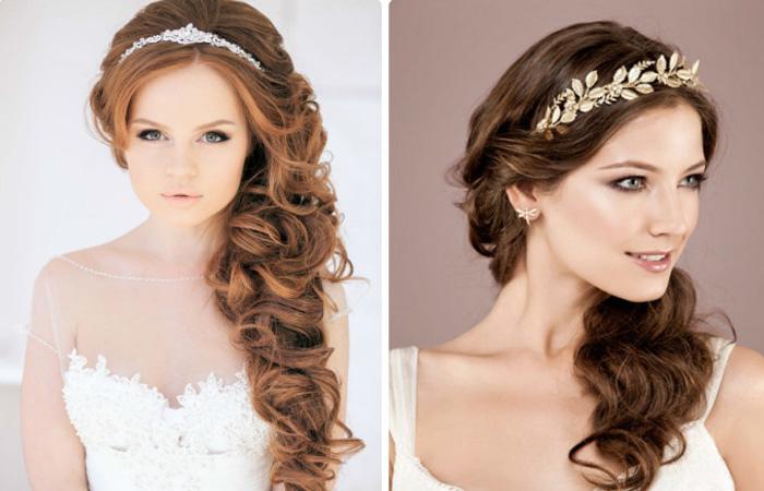 - Обладательницам длинных локонов можно просто надеть ободок, не заворачивая пряди или обернув несколько прядок у виска. Остальные волосы можно завить.