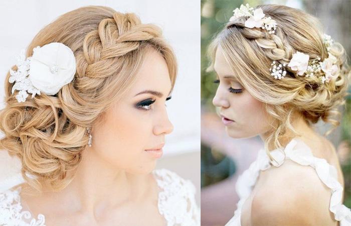 Совет. В качестве украшения используют цветы, ажурные заколки, ободки со стразами. Даже обычная тонкая косичка из собственных волос гармонично украсит образ.