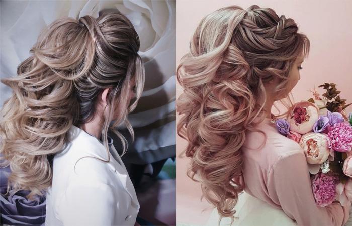 Можно часть прядей задействовать в плетении, а остальные завить в крупные локоны. Смотрится такая модель утонченно и нарядно.