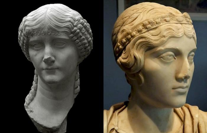 Прически Древнего Рима могли рассказать о социальном статусе, происхождении, семейном положении. Девушки на выданье заплетали 6 кос, уложенные вокруг головы. Особые формы использовали замужние матроны. Во время правления рода Флавия популярными были высокие модели, напоминающие башню. Более простые формы вернулись с приходом к власти Адриана.