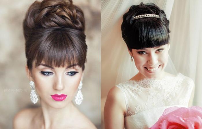 Укладки с челкой придают индивидуальность образу позволяют скрыть высокий лоб и другие небольшие внешние изъяны. Можно создавать на средних и локонах ниже плеч, пышные прически подчеркивают хрупкий, стройный силуэт. Подходят барышням с круглым и продолговатым овалом, удачная модель станет изюминкой образа.