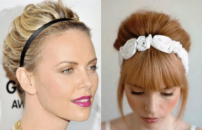 Традиционно древнеримские прически украшались лентами. В современных вариантах можно использовать ободки, подбирая под различные стилистические направления. Акцентируют внимание на чертах, подходят для правил овалов с точеным подбородком. Возможно использовать как вариант ежедневной или праздничной укладки.