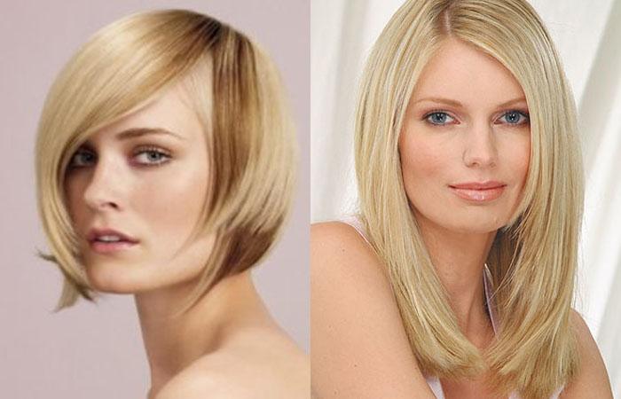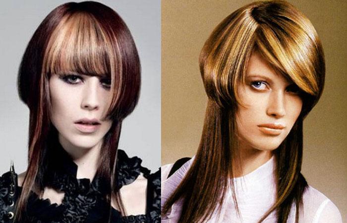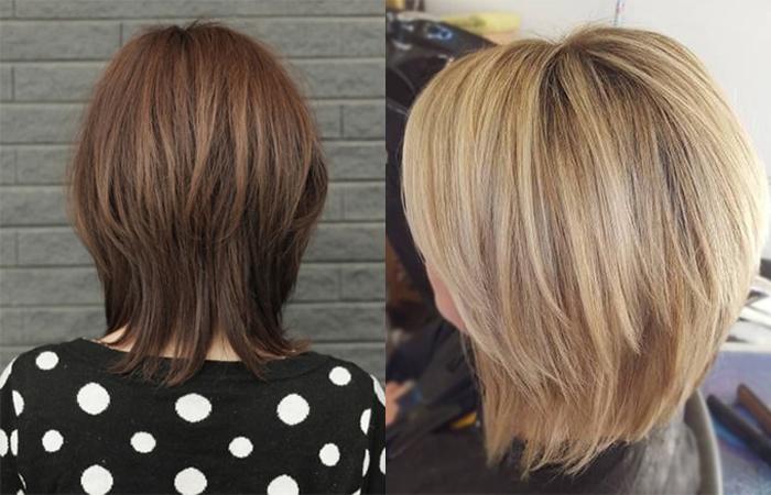 Двойной вариант традиционной формы выполняют на разную длину волос. Существуют модели с однородной и резкой структурой. Более плавный переход длины проще получить на короткой стрижке. В прическе увеличенной длины для создания однородности выполняют протяженное филирование концов. Варианты с плавным переходом рекомендованы обладателям резких угловатых черт, мелких дефектов, органично смотрятся на дамах в возрасте. Осветление, мелкое мелирование станет органичным дополнением.