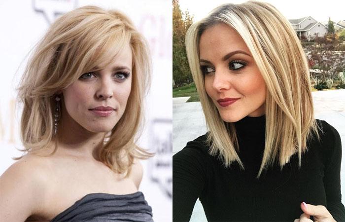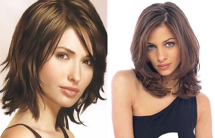 Для обладателей узкого, вытянутого лица, тонких волос идеальны варианты двухуровневого каре с объемом на макушке. Для этого верхний слой рекомендуется стричь выше, внутри делать интенсивную филировку. Общая длина допустима разная. К вытянутому овалу больше подойдут средние, короткие хвостики нижнего слоя. Усилить впечатление объема поможет окрашивание в светлые тона.