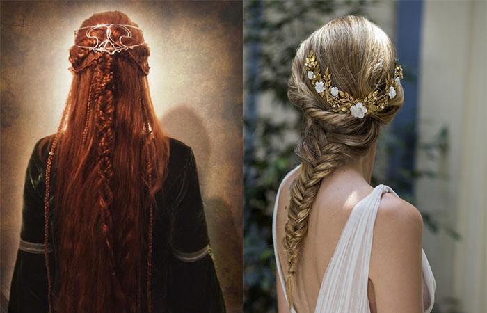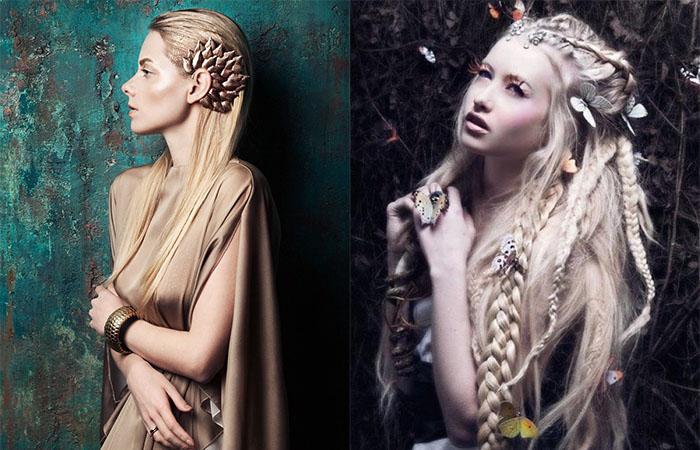 Выражение «неземная красота» с легкостью применимо для различных сказочных существ, например, к эльфам. Добавить своему образу притягательности и загадочности поможет подражание знаменитым персонажам «Властелина колец». Этим приемом часто пользуются авторы модных показов и стилисты звезд. Легкая небрежность с винтажными нотками, которой обладают эльфийские прически, элементарно проста в исполнении, но создает сложный, цепляющий образ.