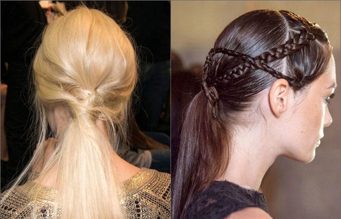 Плетения можно заменить хвостиком из волос теменной зоны. Пряди захватывают сзади. Для крепления используют прозрачные силиконовые резинки. Соединение рекомендуется дополнительно скрыть прядью волос. Для украшения используют живые или искусственные цветы. Реалистично выглядят изделия из кожи, фетра, шелка.