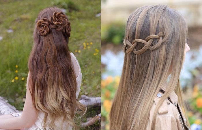 Можно сделать подобие водопада, оплести косами хвост или даже соорудить корзинку. Возможны элементарно простые и сложные фантазийные конструкции. Укладку делают из существующей массы волос, добавляют канекалон, ленты, шнуры.