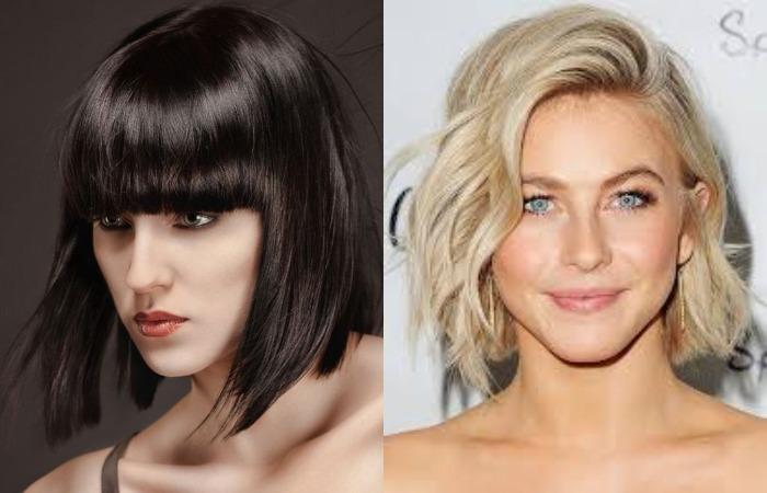 - используются разные виды челки — прямая, асимметричная, удлиненная, градуированная, модель подбирается под форму овала;