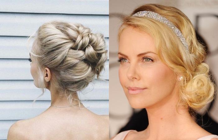 Французский узел роскошно смотрится на длинных, вьющихся локонах, может располагаться в области макушки, интересно выглядит асимметричный вариант. Благодаря мягким завиткам пышная прическа кажется невесомой. Подходит разным типажам внешности, подчеркивает, женственность, элегантность. Отличный вариант праздничной модели, сочетается с пышными платьями, а также нарядами с приталенным силуэтом.