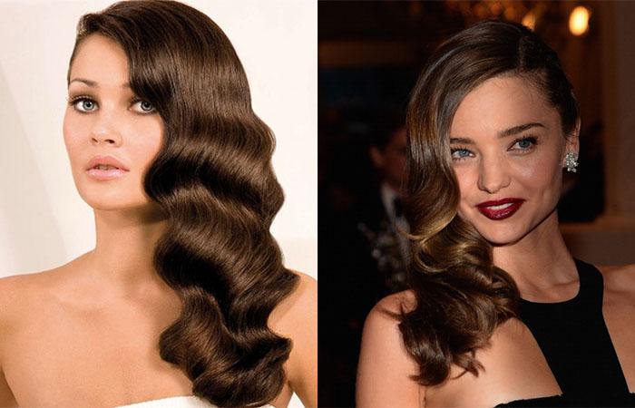 Классические голливудские локоны станут украшением длинных волос. Прикорневой объем, легкие ниспадающие волны с боковым пробором — основные характеристики прически. Можно использовать не только барышням с правильной формой овала, но и круглолицым девушкам. Асимметрия прически визуально гармонизирует внешность, позволяет выглядеть выше и стройнее. Женская прическа подходит для исключительных случаев.