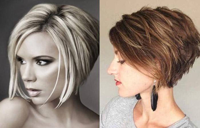 Градуированное каре на короткие волосы предполагает создание объема в затылочной области и ниспадающие к подбородку рваные кончики, так называемое боб-каре. Такой вариант идеально подойдет девушкам худощавой структуры, а красавицам с пышными формами рекомендуется обратить внимание на более объемные прически.