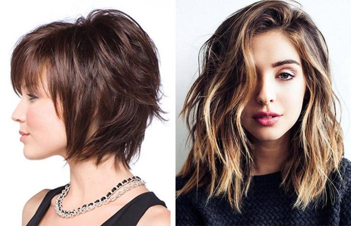 Основные отличия — многослойность. Благодаря небольшим приемам (косая или ровная челка, филировка концов волос, асимметрия), прическа поможет визуально вытянуть или округлить лицо красавицы, сделать внешность более гармоничной.