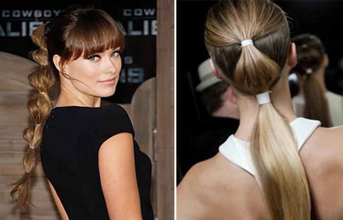 Ступенчатый хвост пользуется повышенной популярностью у знаменитостей. Вариант позволяет создать забавный, неординарный образ. С прической появлялись Бейонсе, Кэти Перри, Хайди Клум и многие другие любительницы хвостиков. Наиболее часто укладку получится заметить у Оливии Уайлд.