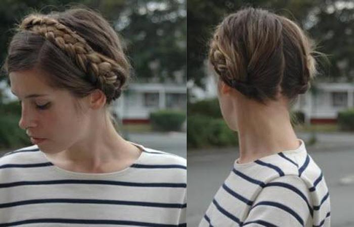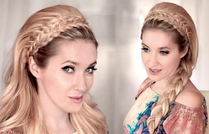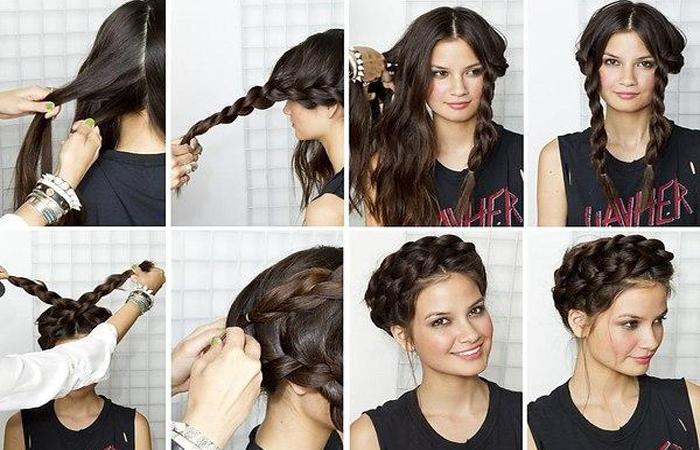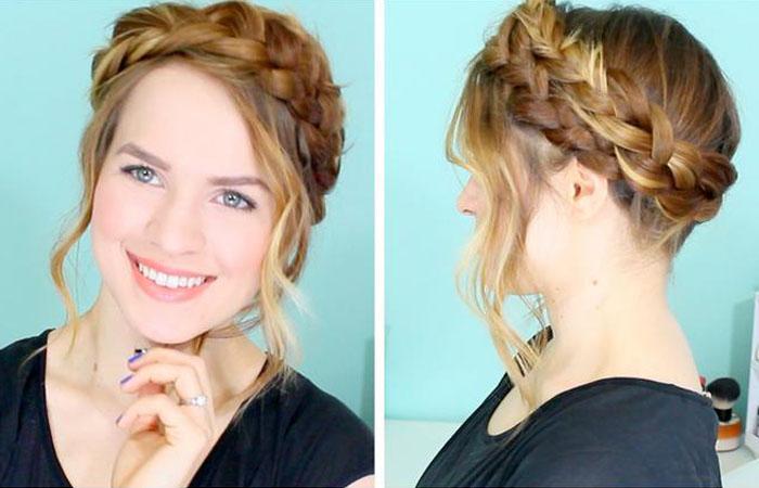 Высокая укладка-ободок из двух кос