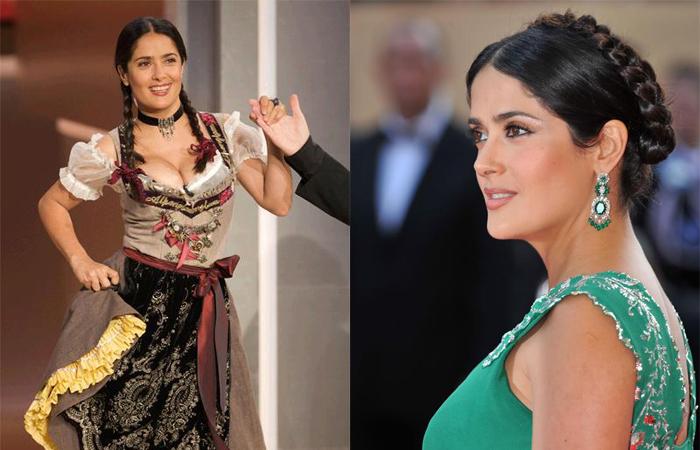 Мексиканка Сальма Хайек появлялась на публике и с двумя косичками, и с аккуратным плетением вокруг головы.