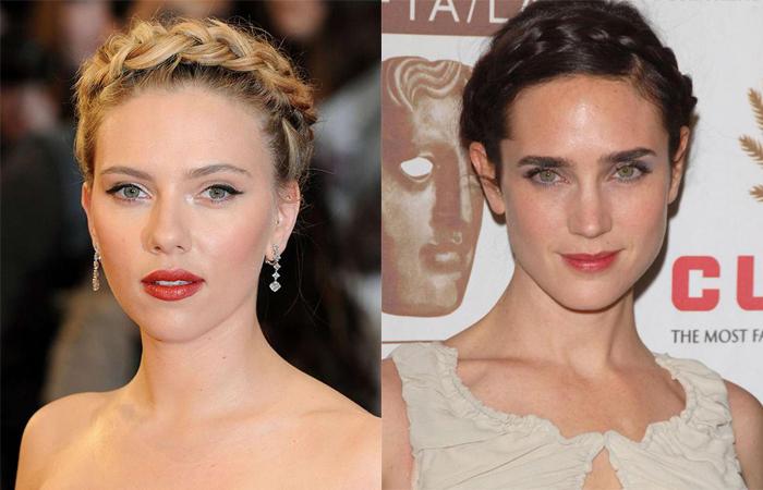 Аккуратные косы, уложенные вокруг головы, можно было увидеть на актрисах Скарлетт Йоханссон и Дженнифер Коннелли.