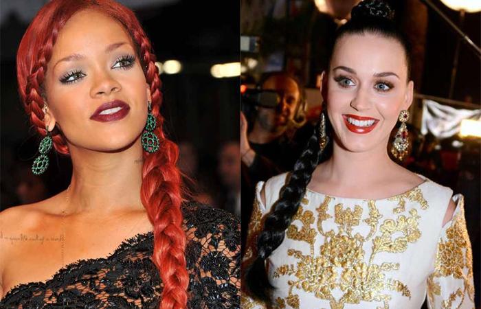 А Кэти Перри, наоборот, собрала волосы в высокий пучок. По своему исполнению от тоже гармонирует с косичкой.