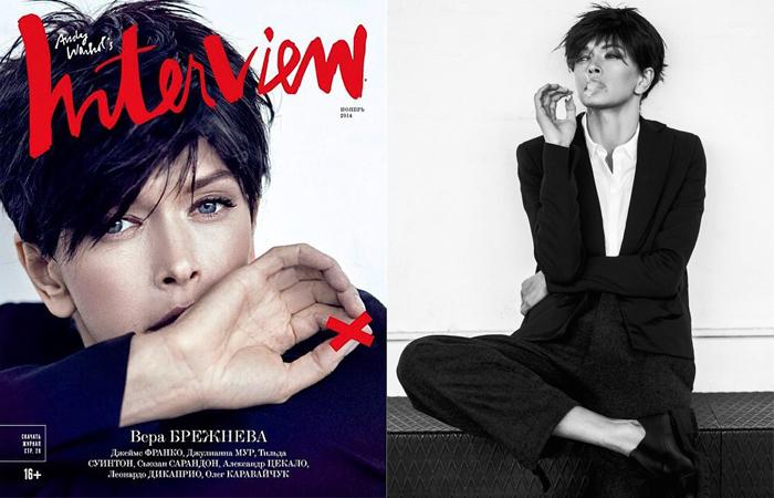 Ноябрь 2014: на обложке журнала Interview известная блондинка предстала брюнеткой с ультракоротким «Пикси». Мимолетный образ был ненастоящим, только удачный парик.